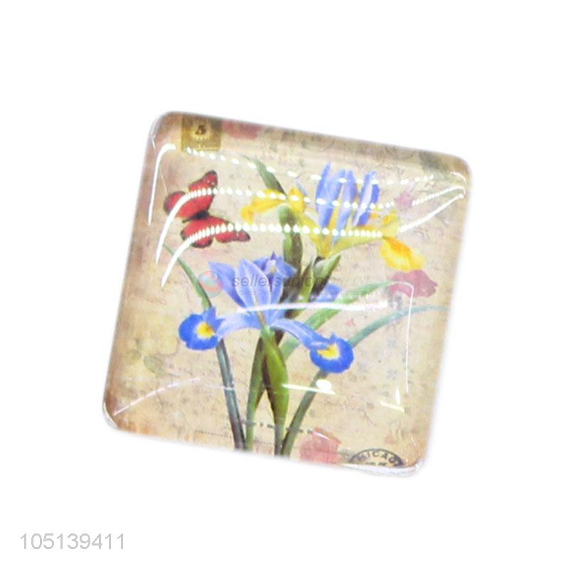 Promotional cheap square flower pattern glass crystal fridge magnet