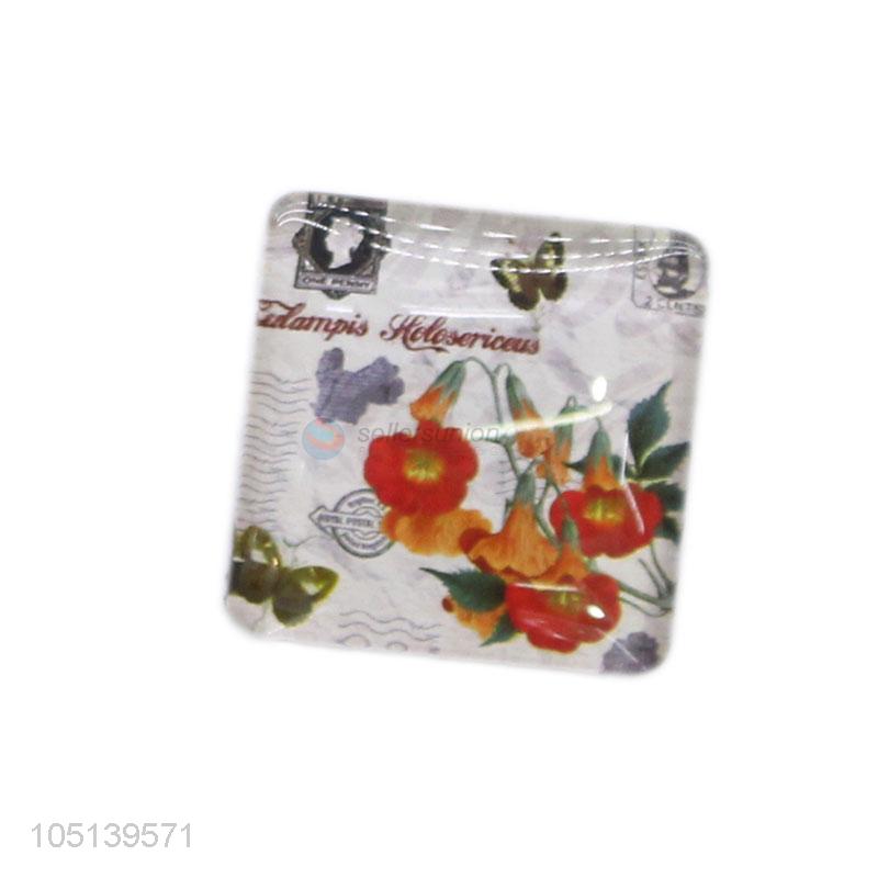 Manufacturer directly supply square flower pattern glass crystal fridge magnet