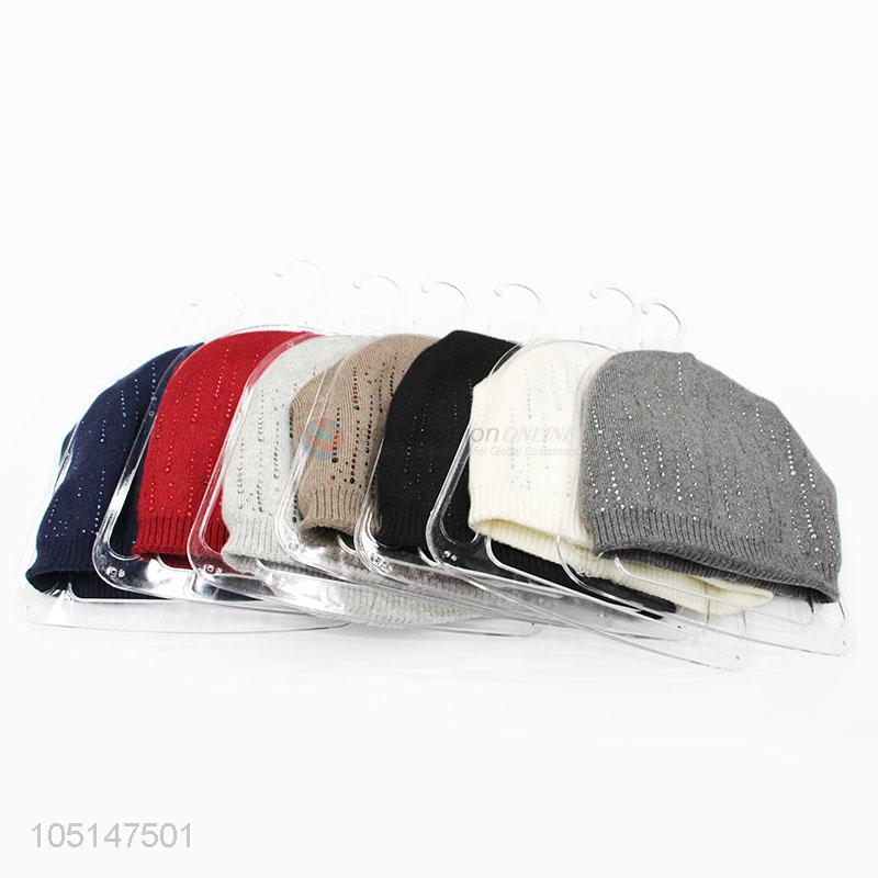 Wholesale Comfortable Adults Customized Wool Knitted Double-Deck Winter Hat with Rhinestone Decoration