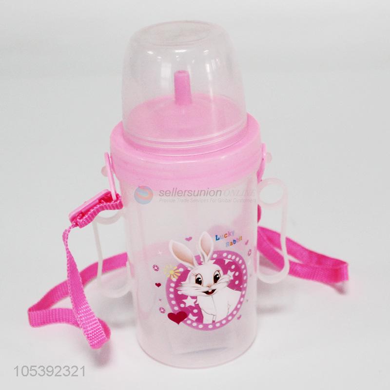 Best selling bunny printed children plastic water bottle with string