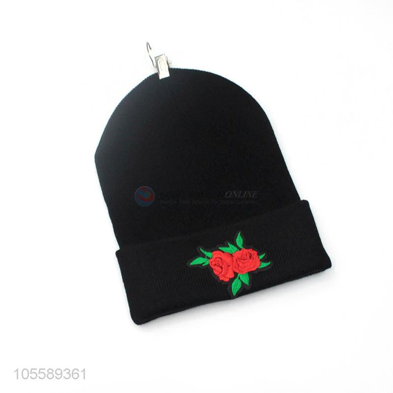 New Arrival Rose Pattern Knitted Beanie Warm Cap