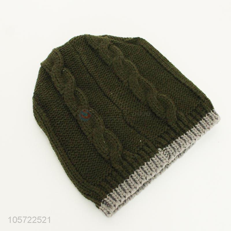 Deep green acrylic knitted winter warm hats