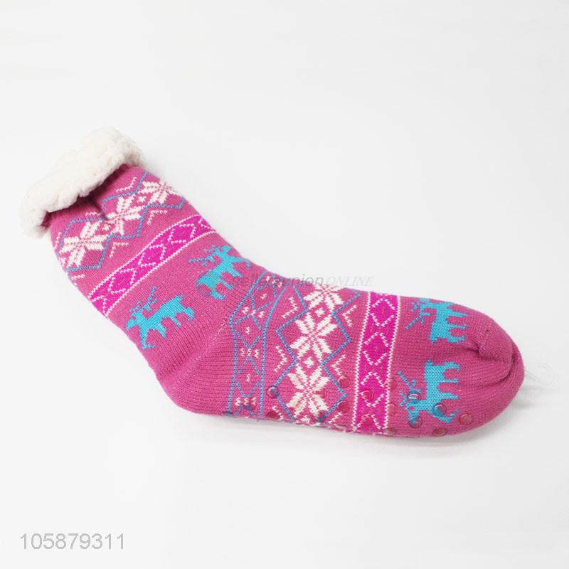 Bottom Price Women Christmas Elk Snowflake Floor Thick Socks