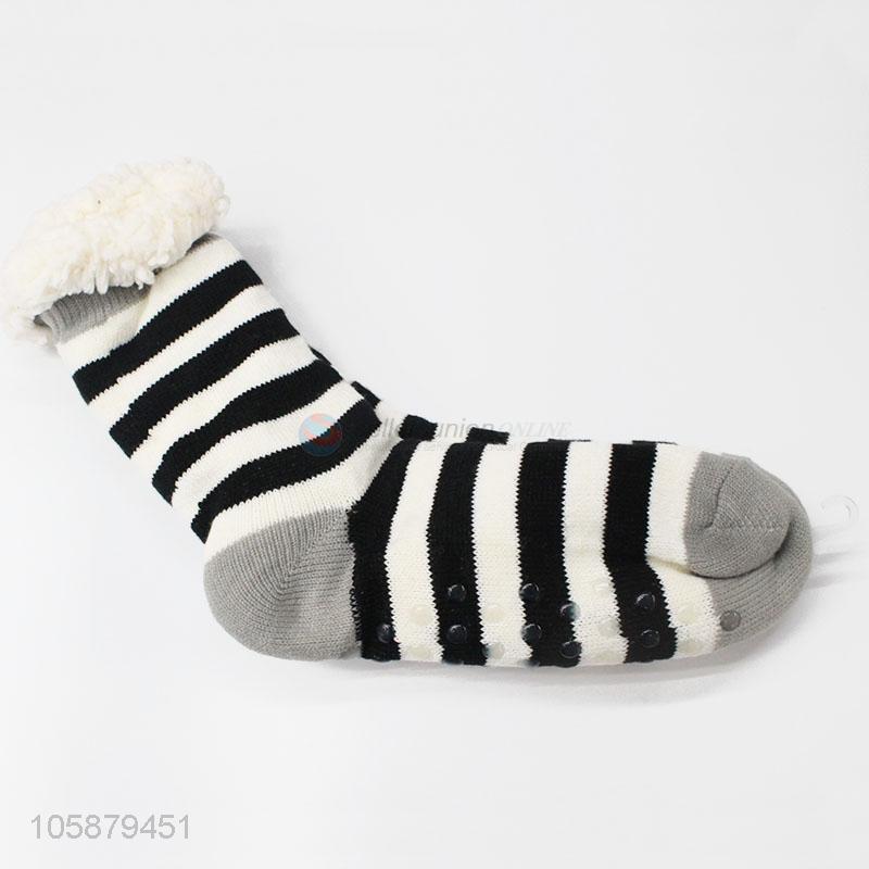 Wholesale Cheap Black and White Stripes Home Floor Thick Winter Socks
