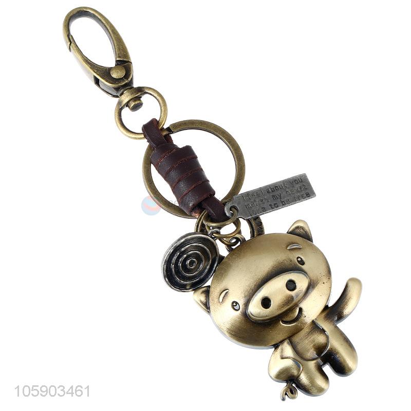 Premium quality weave leather key chain with retro pig charms