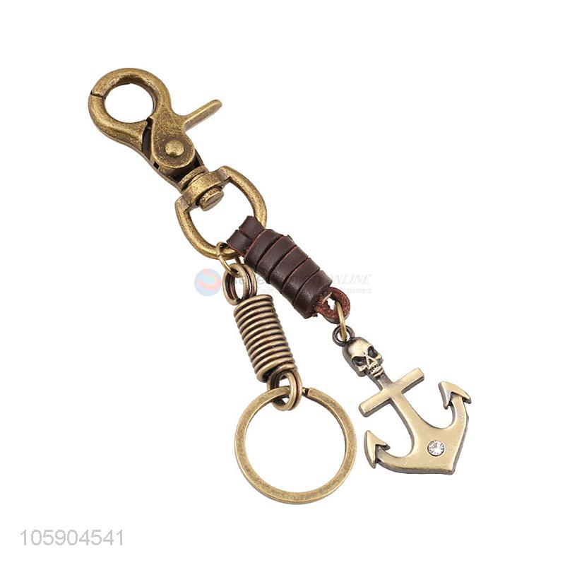 Yiwu factory weave leather key chain with retro anchor charms