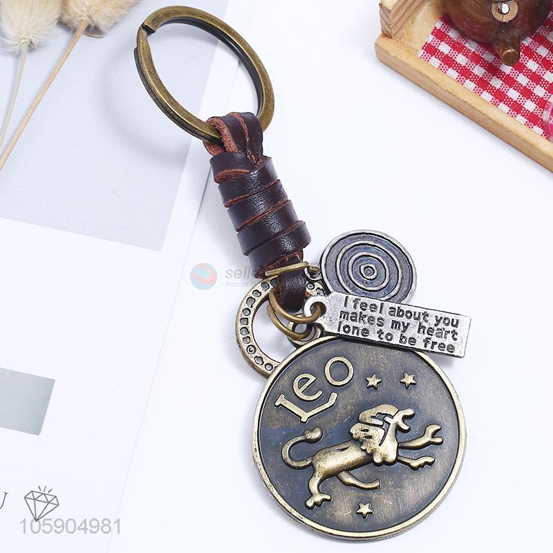 Excellent quality weave leather key chain with retro leo charms