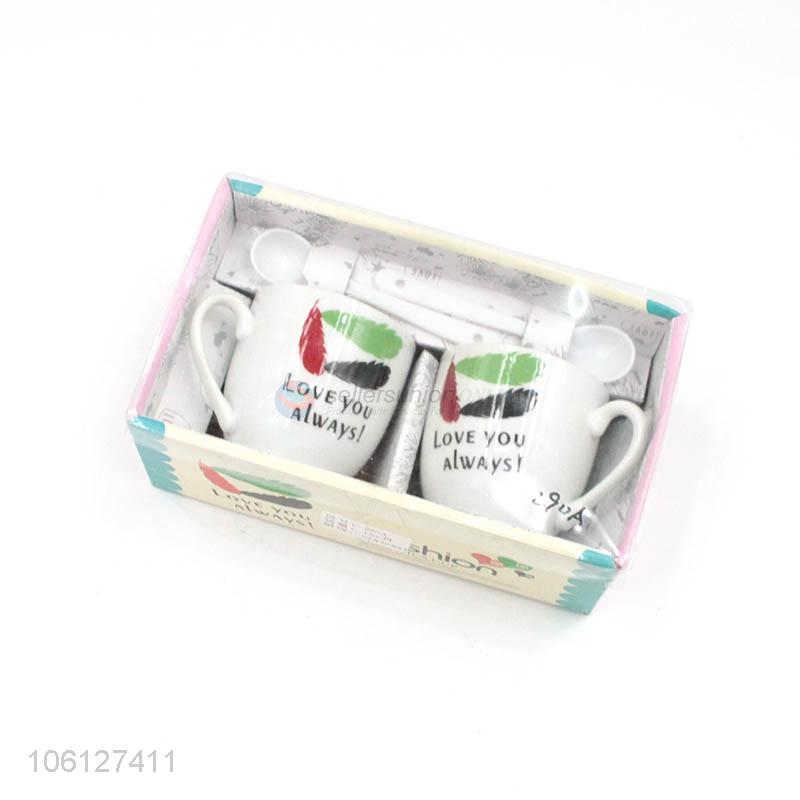 • Wholesale valentine's day gift ceramic couple cup with spoon