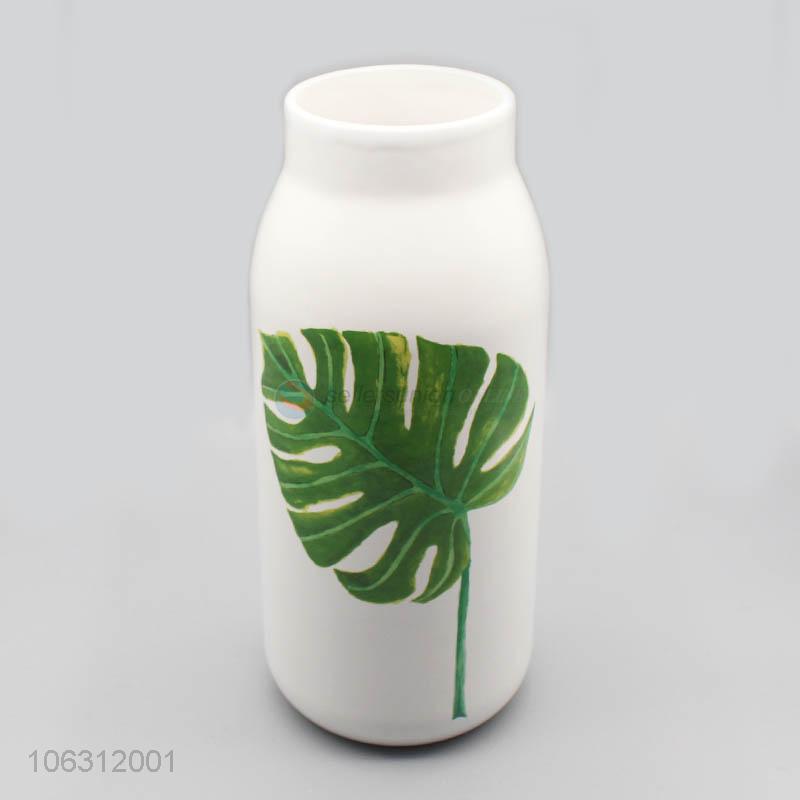 Competitive price green leaf printing porcelain flower vase