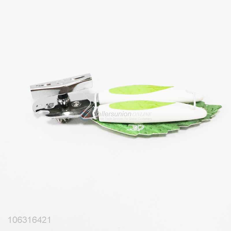 High quality stainless steel can opener with green leaf printed handle
