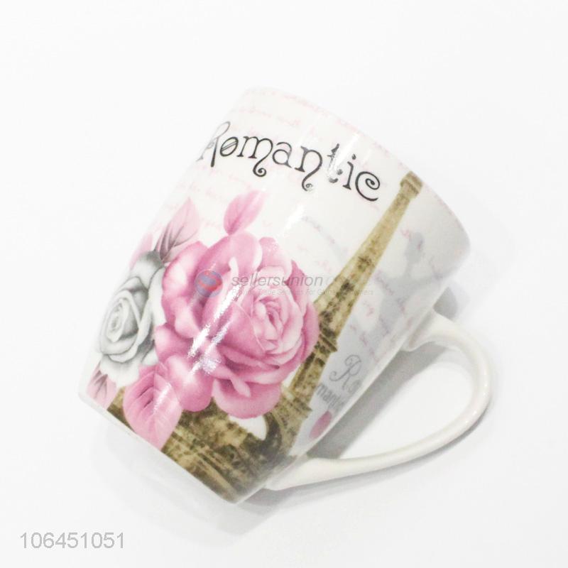 Great sales rose&tower pattern ceramic cup with handle