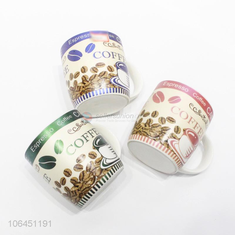 Good quality coffee bean pattern ceramic cup with handle