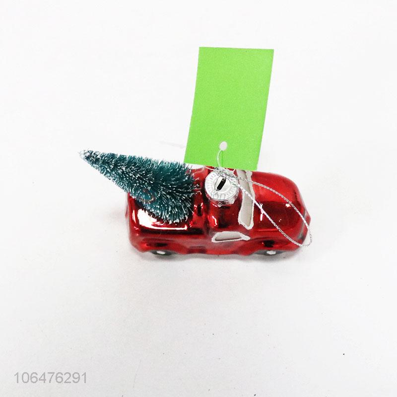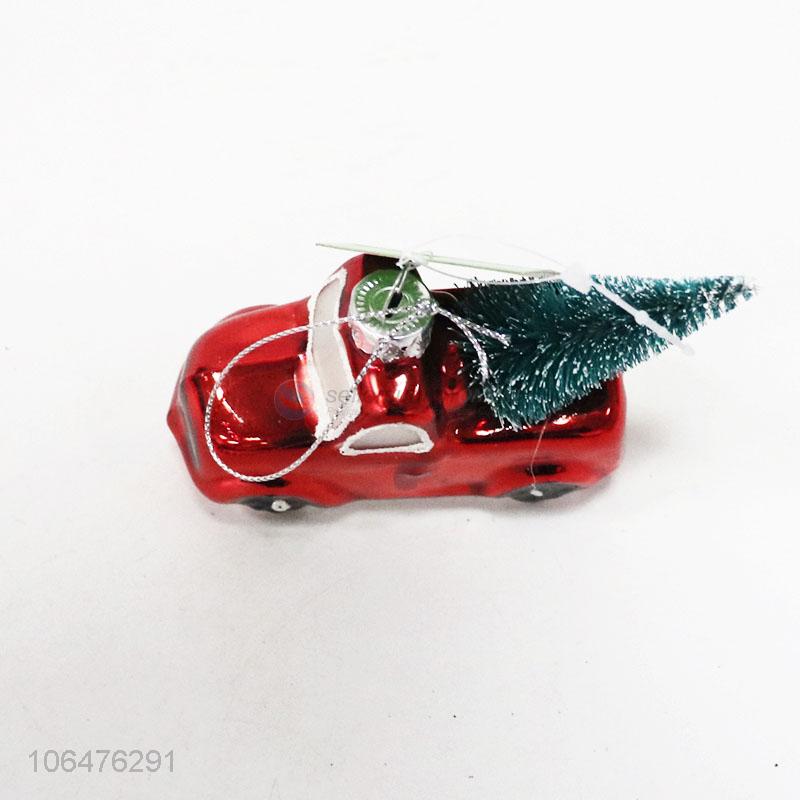 Hot selling hanging Christmas figurines painted glass car mould with tree