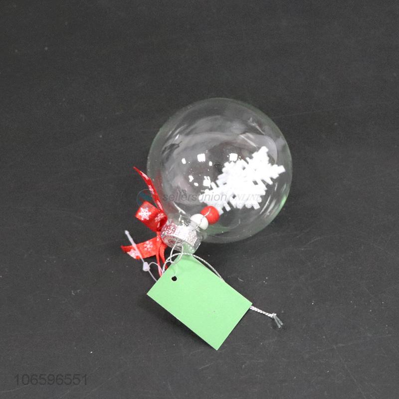 Wholesale cheap transparent Christmas hanging ball glass ball filled with foam snowflake