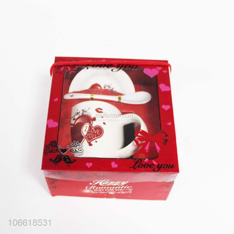 • Wholesale valentine's day gift ceramic couple cup with spoon