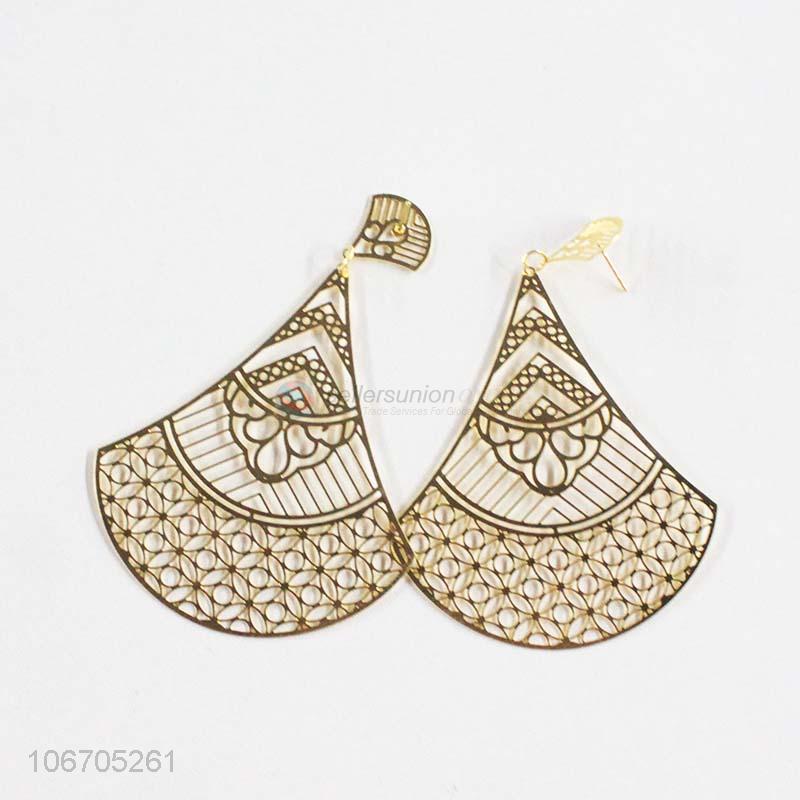 • High sales fashion accessories golden filigreed earrings for women