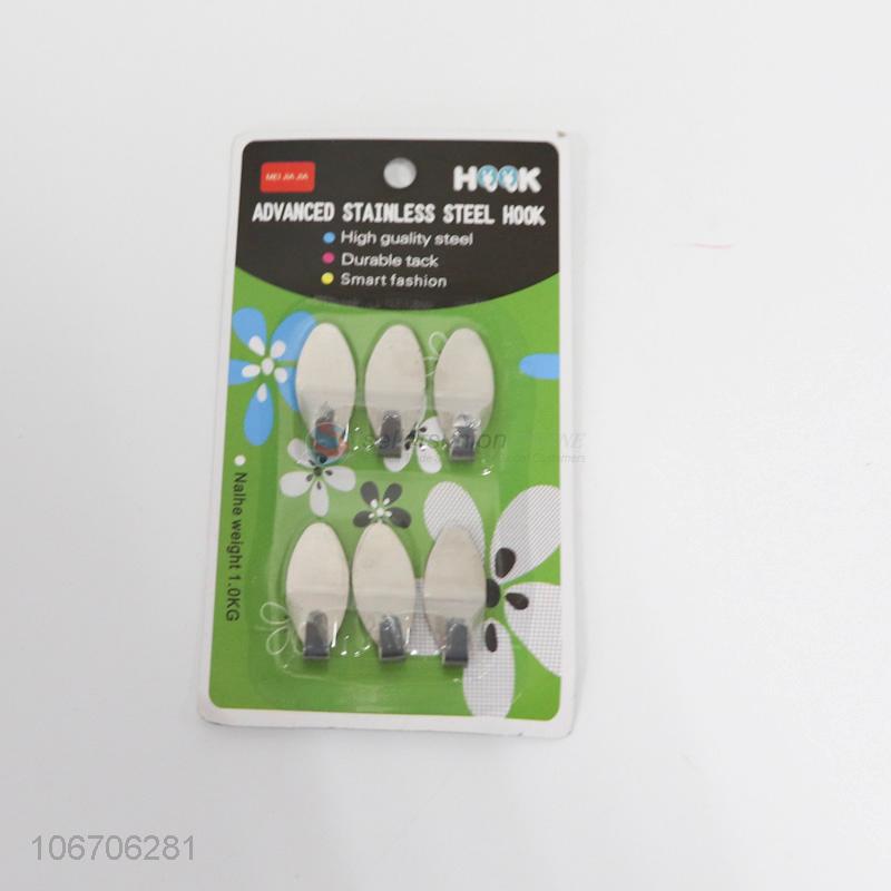 High quality 6pcs/set oval metal sticky hooks/adhesive hooks