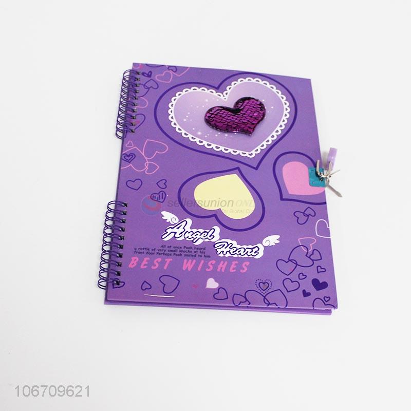 • Hot sale fashion heart cover spiral notebook with lock