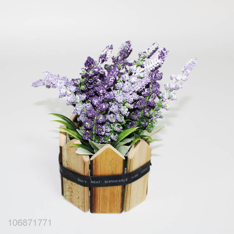• New purple lavender artificial flower simulation decoration wooden pot
