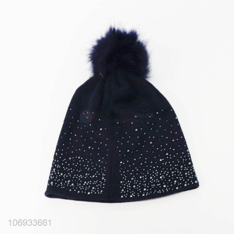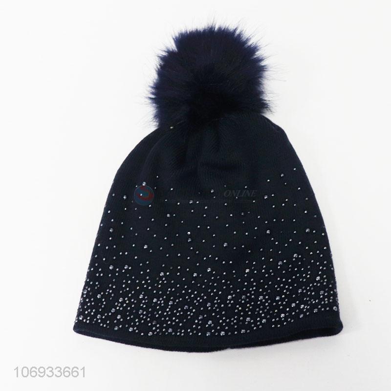 • Good sale fashion women winter warm acrylic knitting hat with pom pom