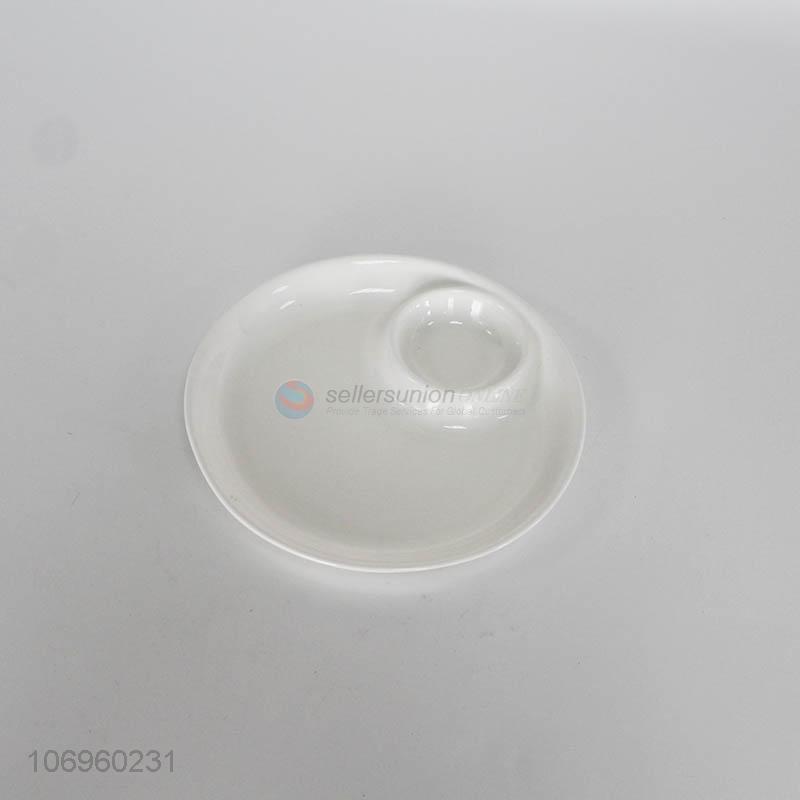 • Factory supply 2-compartment ceramic divided snack tray dessert plate