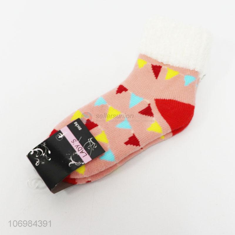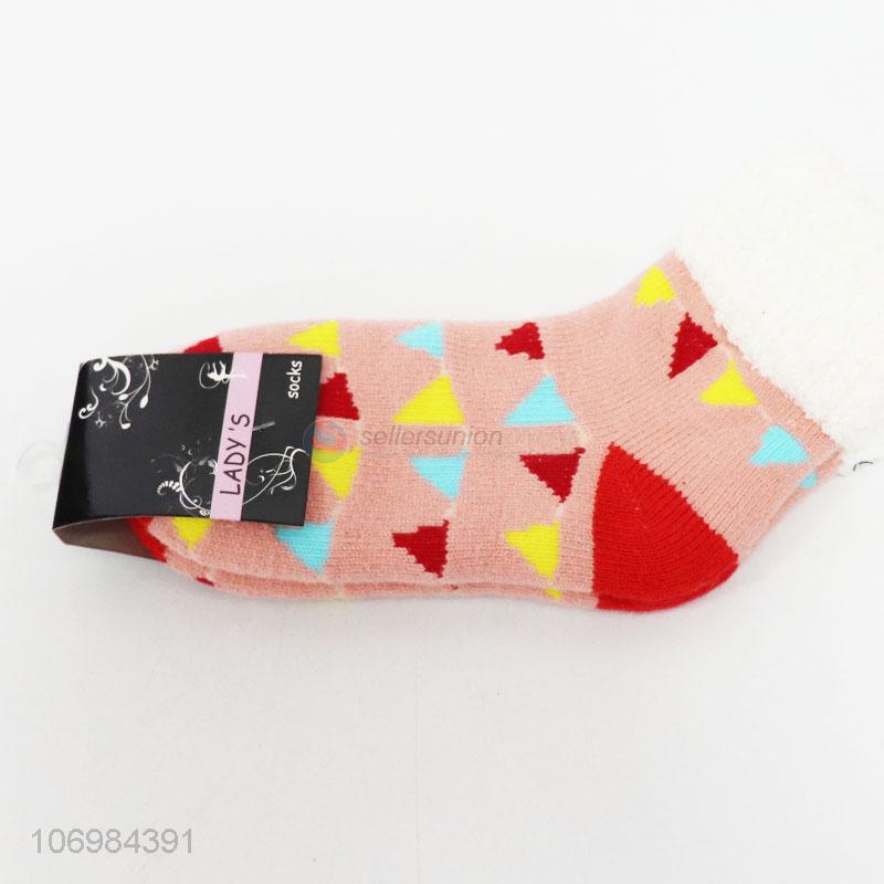 Recent style colorful triangle jacquard women ankle socks