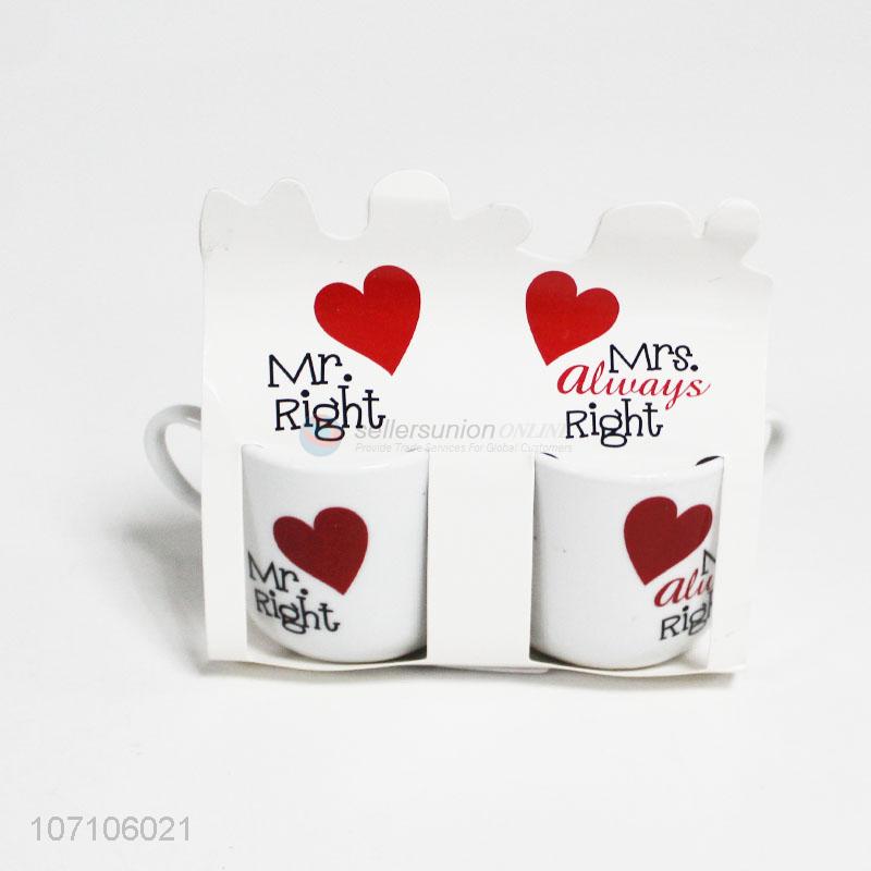 Best sale Valentine gifts ceramic mug set Mr Right and Mrs Right couple cups