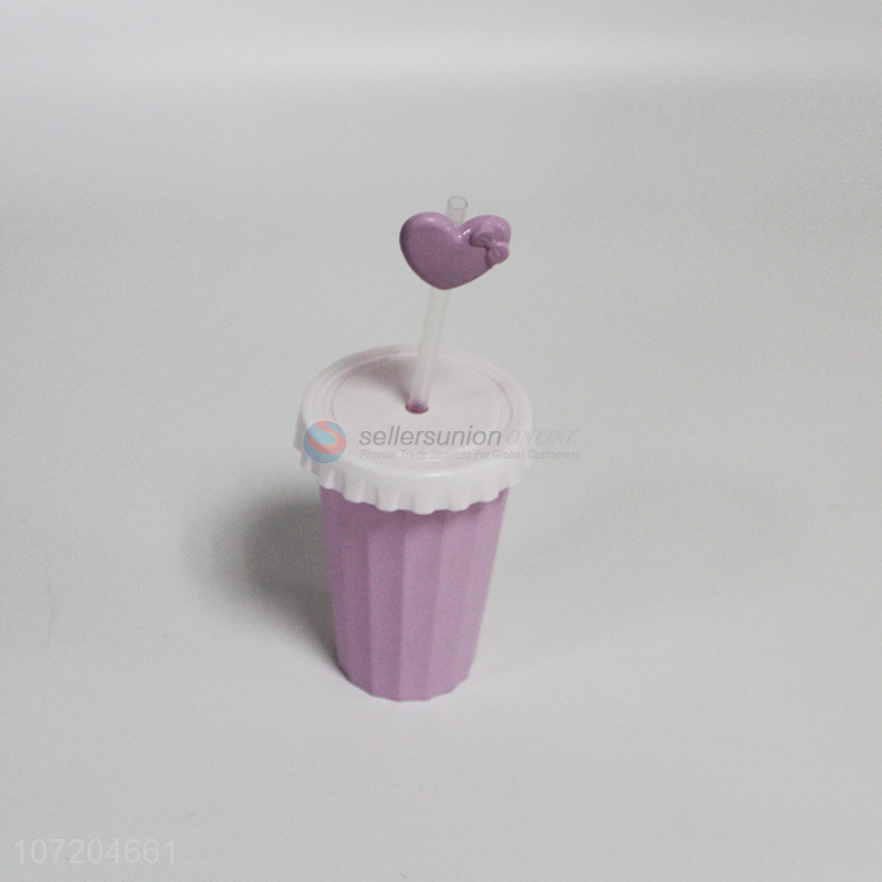 Wholesale heart design plastic drinking cup with lid and straw