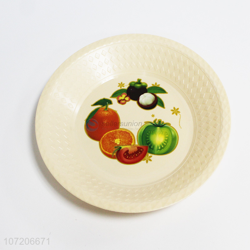High quality custom logo printed round plastic dinner plate fruit plate