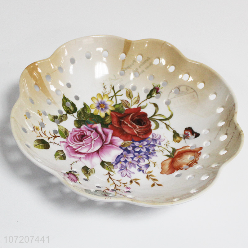 Popular products flower printed hollowed-out melamine fruit plate for decoration