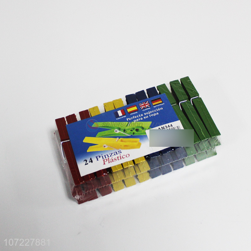High quality cheap 24 pieces colorful plastic clothes pegs clothes pins