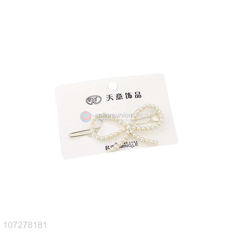 Good Quality Bowknot Shape Pearls Hairpin Frog Buckle Clip
