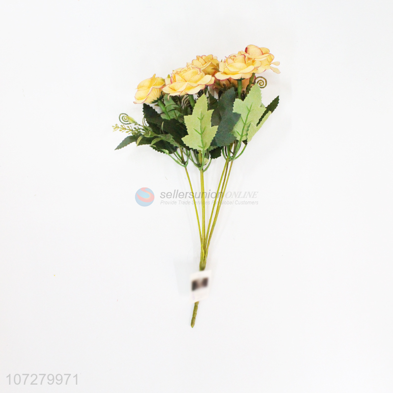 • Factory customized 5 heads artificial rose decorative silk cloth flowers