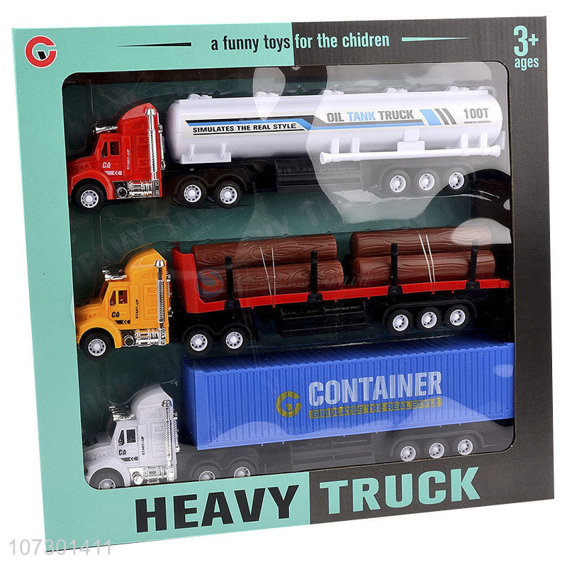 Factory Promotional Inertia Oil Tank Truck Container Heavy Trailer Truck Set Toys