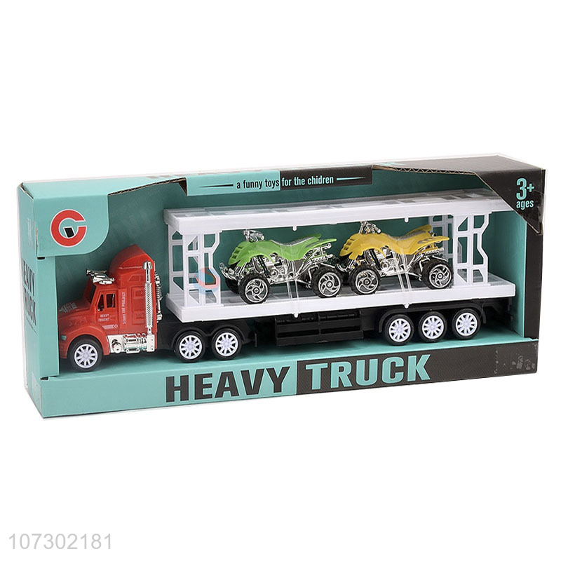 Wholesale Inertial Heavy Trailer Truck Toy Carrying Two Motorcycles For Kids