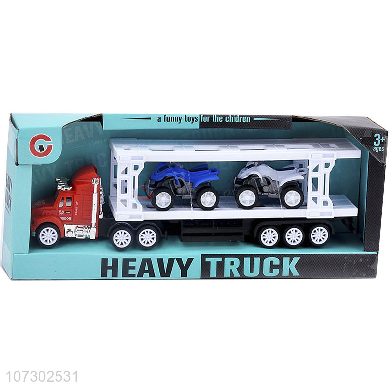 Wholesale Childrens Funny Toys Inertia Heavy Trailer Truck Carrying 2Pcs Motorcycles