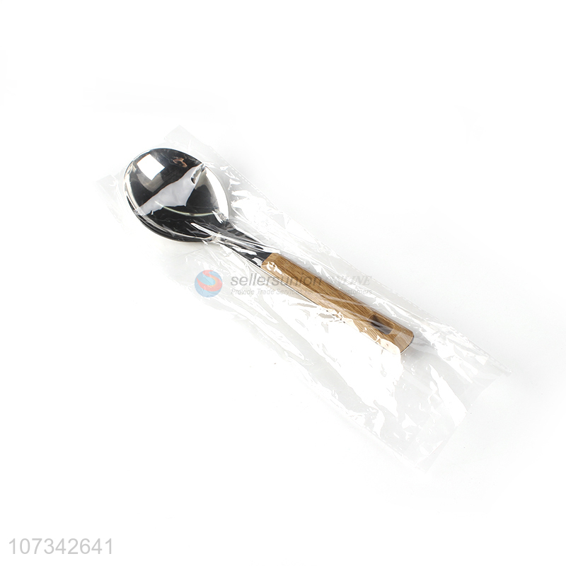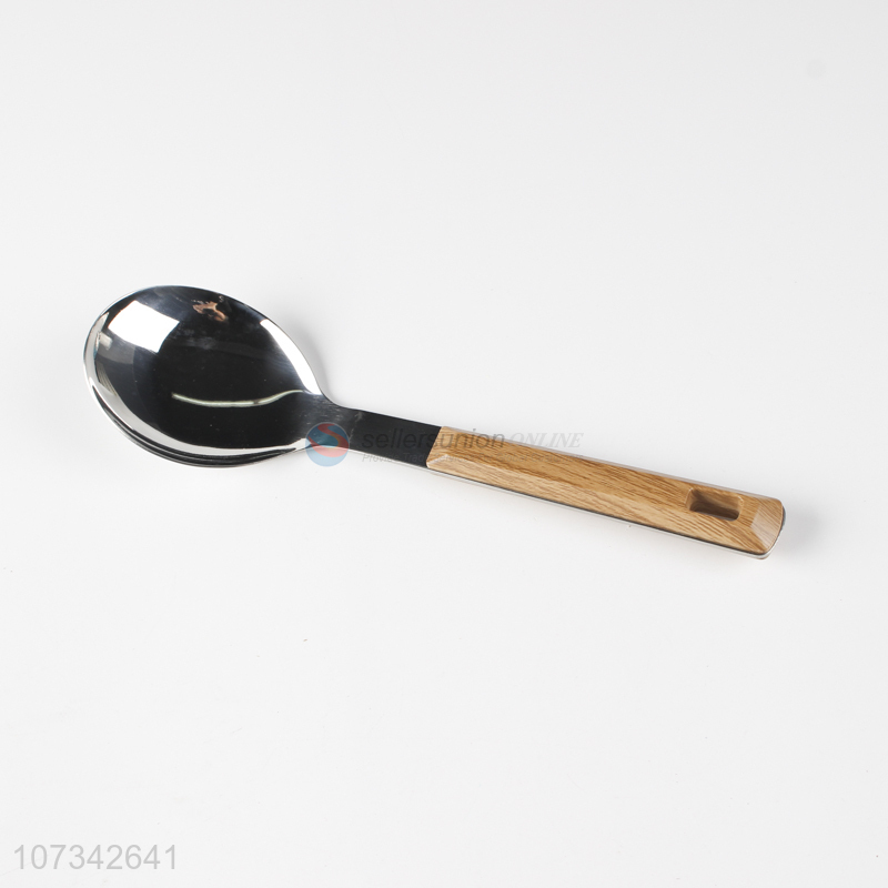 Wholesale Plastic Wood Grain Handle Meal Spoon Stainless Iron Rice Spoon