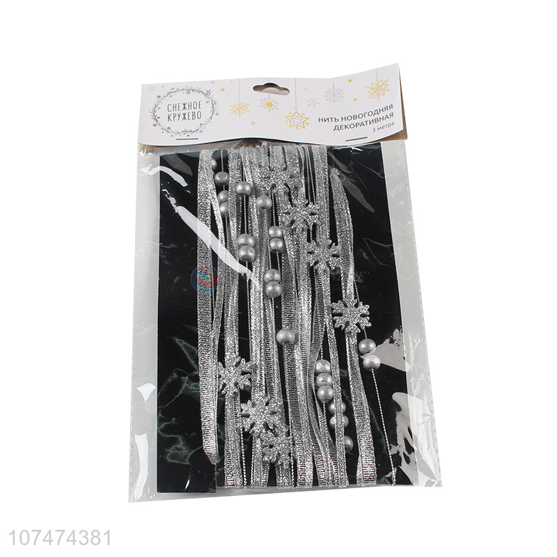 Hot selling Christmas decoration silk ribbon with wooden snowflakes