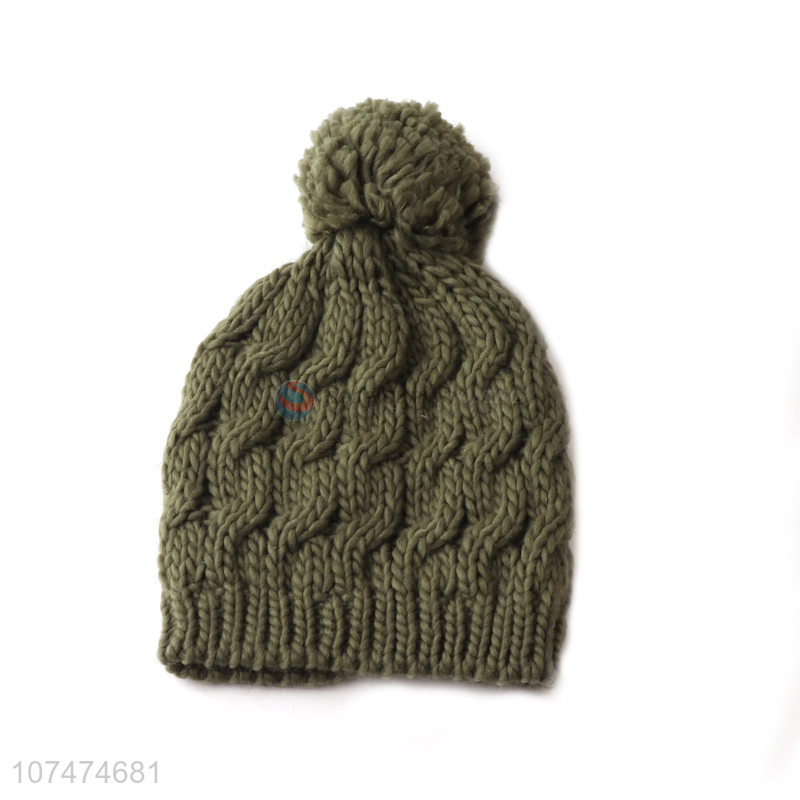 Good price green acrylic outdoor knitted hat