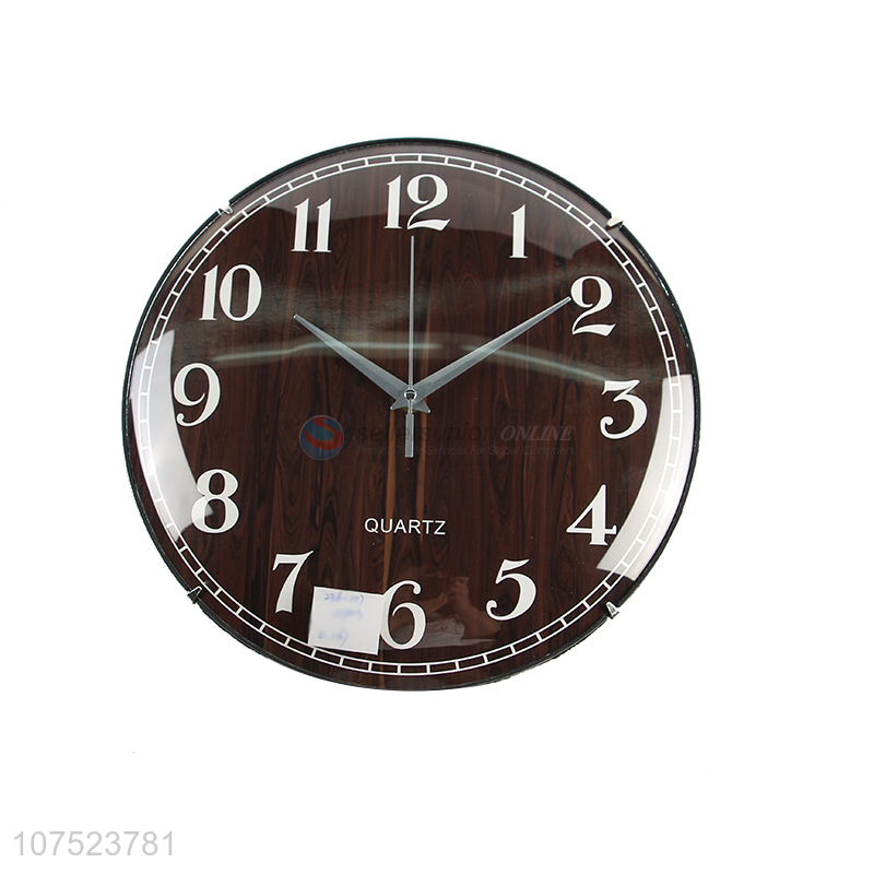 Factory direct sale modern wood grain wall clock no-punch bedroom round clock quartz clock