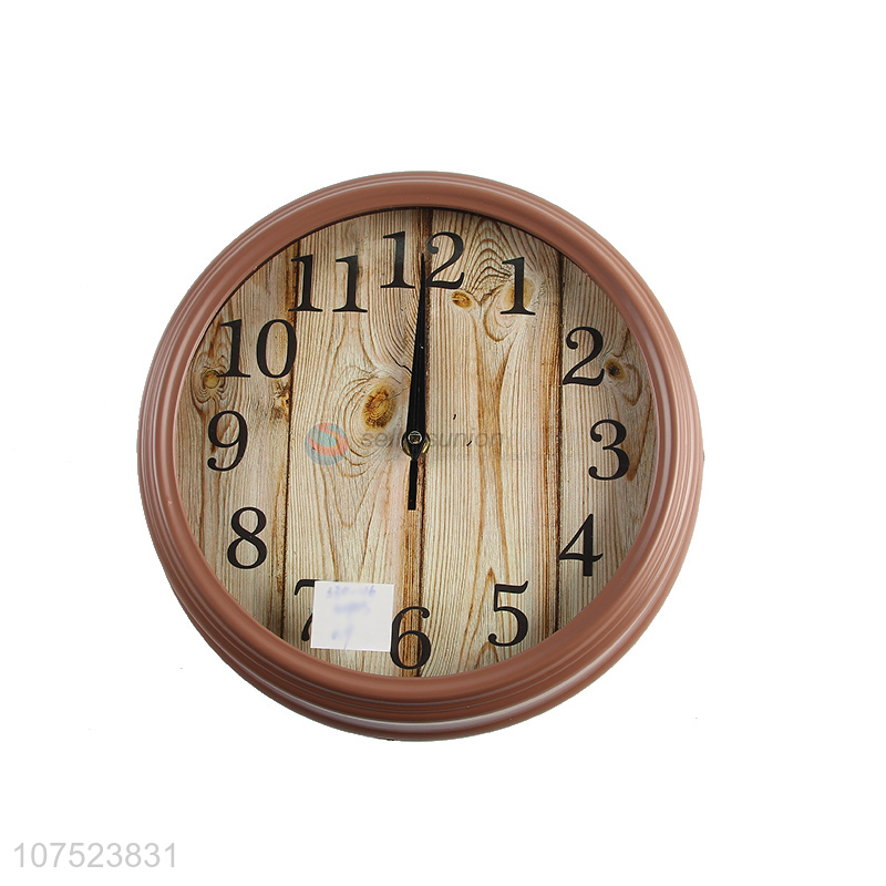 China factory creative wood grain silence wall clock living room plastic wall clock