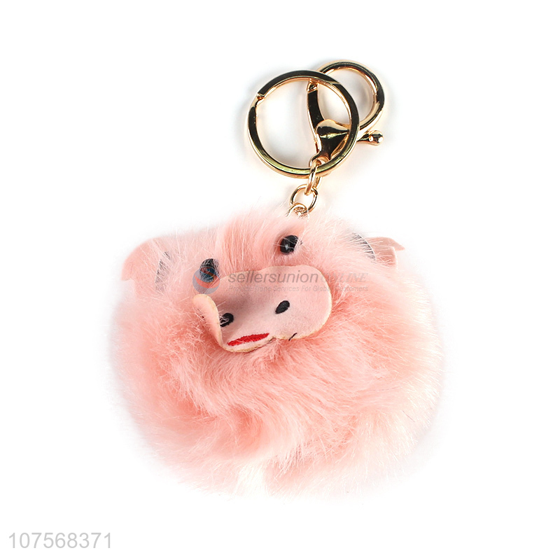 Bottom price fluffy piggy key chain fluffy faux fur ball bag pendants