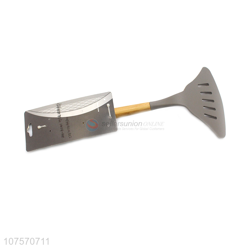 New Kitchenware Silicone Slotted Turner Spatula With Bamboo Handle