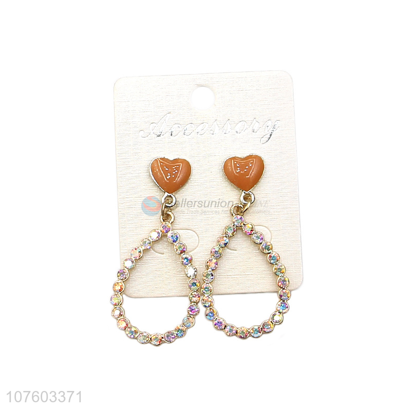 Most popular colorful rhinestone earrings waterdrop hoop ear studs