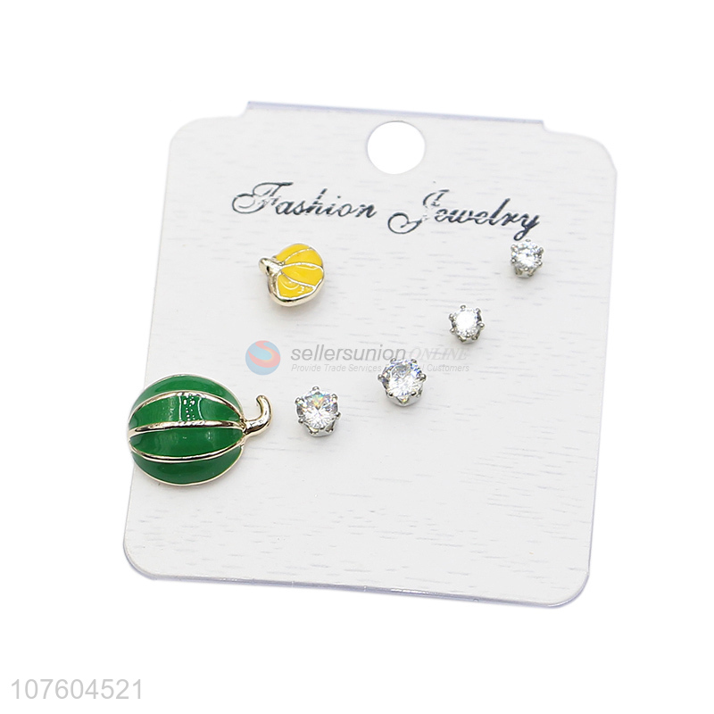 Factory price fashion pumpkin enamel alloy stud earring set for girls