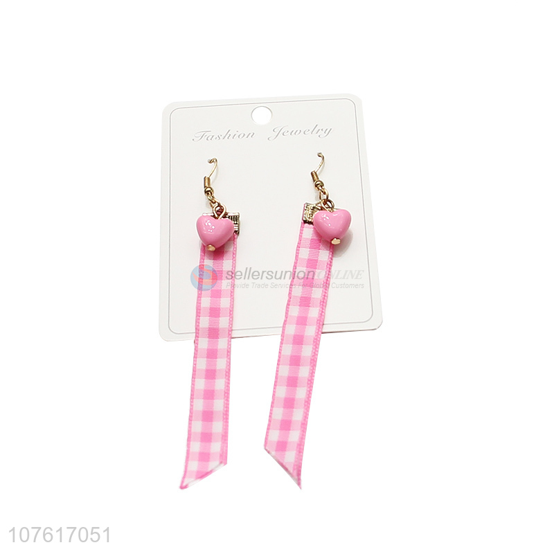 Hot Sale Pink Heart With Cloth Strap Hook Earrings