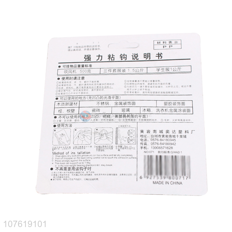 Hot sale eco-friendly low price strong adhesive plastic hooks