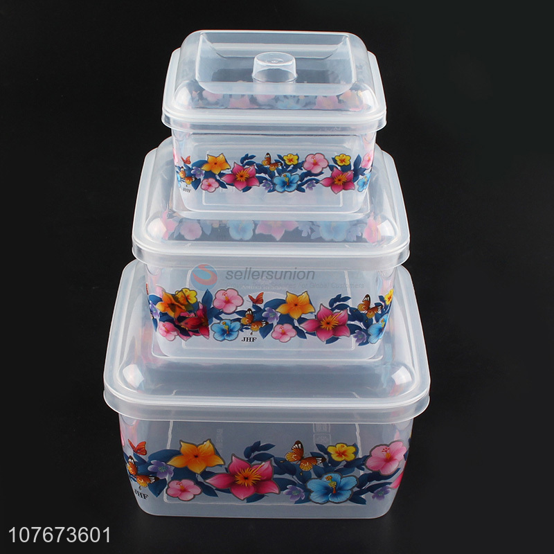 Fashion Printing 3 Pieces Transparent Plastic Food Fresh Container Preservation Box Set