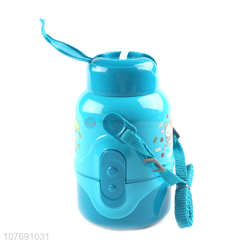 Wholesale kawaii kids plastic water bottle with straw and strap