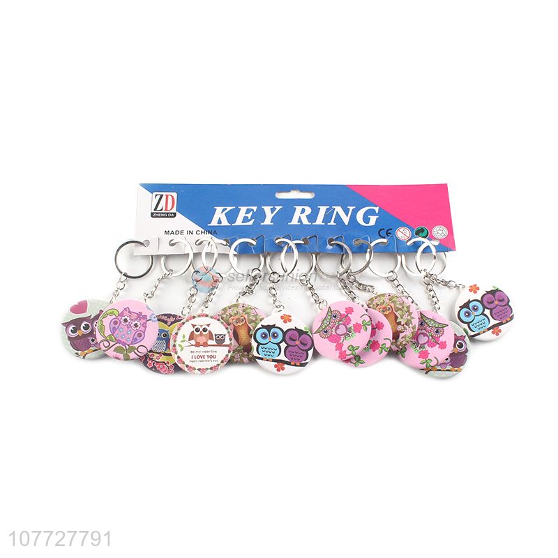 High quality owl printed single sided pocket mirror key chain for ladies